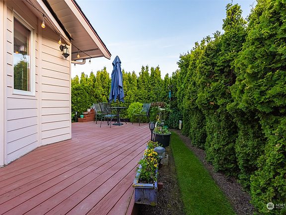 Meticulously maintained single-story rambler tucked away in a beautiful, secluded, park-like setting in desirable neighborhood. Enjoy the wrap around deck, 18 x 20 raised garden, natural gas barbecue, all new stainless appliances in 2022, 50 year roof installed in 2018, new hot water heater in 2019, newer furnace and air conditioner in 2017. Plummed for fireplace. The large room off the garage (approx.15 x 21) with its private exterior entry door, plumbed with hot & cold water, could easily expand to include a bath, possible ADU or convert to single garage. Mature landscaping provides complete serenity & privacy in the city. Lots of room for RV (20 amp) / boat parking. Assumable VA loan, case by case. Come see this rare find!