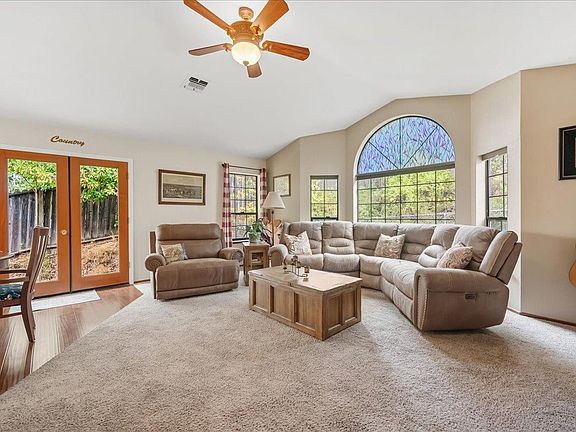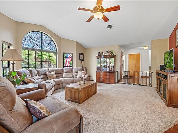 Open floor plan, abundant natural light, and thoughtful spaces for entertaining make this home feel both inviting and functional. Large living room opens to the formal dining room while the kitchen overlooks the family room, currently set up as a game room. Kitchen features granite countertops, stainless steel appliances including refrigerator that can convey with sale, bar seating, and a pantry closet that expands storage options. A convenient wet bar enhances the family room space for entertaining and the wood-burning Thelin-Thompson parlor stove creates a cozy focal point. Upstairs are the bedrooms which are carpeted for warmth and comfort, but buyer may want to replace the carpets with a $10k closing credit being offered from the seller. Downstairs are the laundry room, full bathroom and flexible storage room along with the garage. Recent updates include exterior paint (3 yrs), water heater (4 yrs), and HVAC (4 yrs). The comp shingle roof is approximately 12 yrs old, and the solar panels support energy efficiency. Outdoors on this 1.2 acre lot are a fenced garden, hot tub with gazebo, and an above-ground pool with decking and pool cover which create the perfect space for enjoying the outdoors and entertaining.