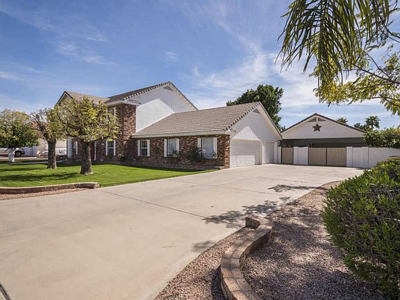 Beautiful custom colonial brick home in Citrus Manor with NO HOA! 4 bedroom + 2.5 bathroom with HUGE workshop or 4 car garage PLUS 3 car attached garage. Enjoy just over 3300 SF of living space on 2 levels. The main level offers formal dining room, office/den, breakfast nook, a family room and kitchen overlooking the spectacular views of the lush backyard. All bedrooms are upstairs with a spacious master bedroom and walk-in closet. This home has a TON of storage space and a huge laundry room. Close to Loop 202, Mesa Riverview, Chicago Cubs Sloan Park, Phoenix Sky Harbor airport and ASU.