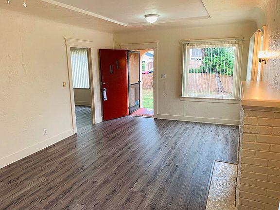 This single story 4 bedroom, 2 bathroom front house includes a detached garage, spacious, fenced front yard and has an open and spacious layout.