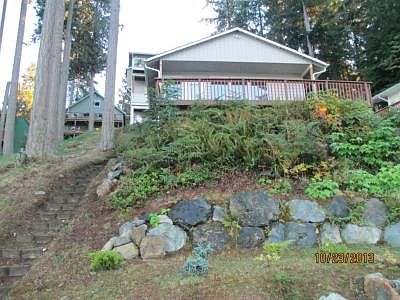 Custom built Lake Ki home w/cabana. 55 ft. frontage w/dock. Home commands a spectacular view of lake from most rooms. Living and master on the main, vaulted ceilings, dream kitchen w/unique features. Five piece master bath w/spa shower and 3 shower heads. Finished lower level includes family room, pellet stove, extra finished room, 2nd master w/full bath and walk-in closet. Second kitchen is ready for cabinets and appliances. Dont miss huge storage room in LL. Separate parcel #for cabana.