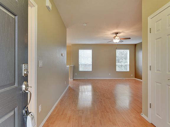 Inviting three bedroom, two and one-half bath home on corner lot with a low HOA! Open concept main living with cozy gas fireplace and great floor plan. Tons of natural light throughout. Upstairs you'll find bright and airy bonus loft and master bedroom with coffered ceiling, large en suite bath with double vanity, and walk-in closet. Large fully fenced back yard with concrete patio perfect for entertaining, play, gardening and more!