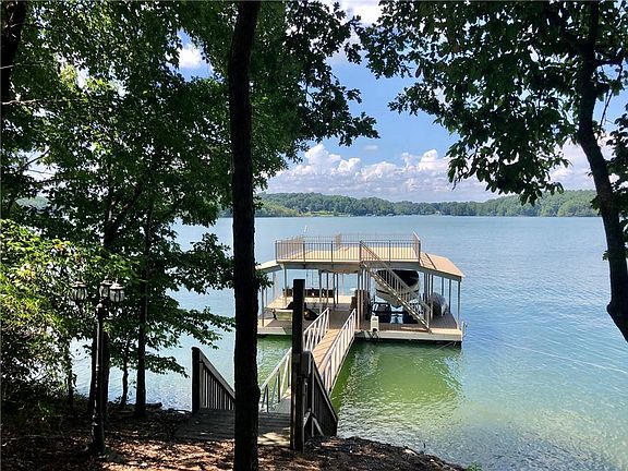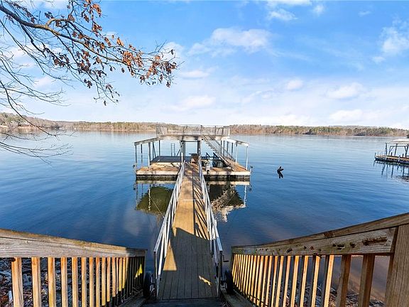 Lake, location, and luxury in one complete package! Offering all the bells and whistles, this property has 100 feet of rip-rapped shoreline, wide open deep water, a concrete cart path down to a top-of-the-line Trex / aluminum 32 x 32 dock complete with party deck, 2 covered jet ski ports, hydro hoist boat lift and security cameras, plus it is situated on one of the most desired sections of the lake. The winter views are panoramic, and with the USACE line very close to water’s edge, significant year-round view enhancement possibilities abound! The estate-sized lot offers a wonderful, peaceful setting. The extremely well-built and meticulously maintained custom home has thoughtful design and function. Exterior highlights include 4-sides brick and stone, a newer 50-year roof with transferable warranty, a large level driveway, an oversized 3-car garage, a screened-in porch, and a massive, lakeside, covered, open-air veranda, with Trex flooring, that acts as a magnet for morning coffee, entertaining friends, or enjoying colorful sunsets. An open concept interior is highlighted by a fabulous great room / dining room, with a wall of lakeside windows and which showcases a stunning, wood-burning stone fireplace. Attached is a spacious kitchen with large stone island, custom cabinetry, stainless appliances and eat-in breakfast room. The owner’s quarter is on the main, with gas fireplace and generous ensuite. Upstairs offers a tremendous flex space with full bath, perfect for a rec room, office, workout, bunk room, teen suite or simply another bedroom. The walk-out terrace level offers family room complete with built-in bar and gas fireplace, as well as 2 secondary bedrooms, finished workshop with amazing custom shelving, and storage galore. Sought after North Hall schools, no city taxes, minutes to I-985, the medical corridor, and New Holland shops and restaurants, plus super convenient to the vibrant Gainesville Square. Without a doubt, this is one of the BEST DEALs on the Lake!