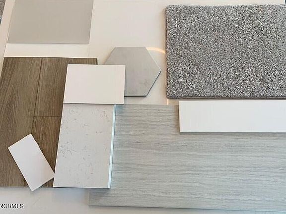 Home Exterior: SW 9141 Waterloo  . EVP Flooring: Light oak with whitewash. EVP Flooring in Foyer, Great Room, Kitchen, Dining Room, Laundry, Owners Bedroom and Closet. Interior Wall Color: SW 9166 Drift of Mist  . Kitchen Cabinet Color: White. Kitchen Countertops: White quartz with gray veining. Upgraded Owners Bath layout with large walk in tile shower, vanity space, and generous walk in closet with white wood shelving and cubbies, upgraded cabinets and quartz countertops throughout, center meet slider in Great Room with coffered ceiling and base cabinets with upper shelving on each side of the fireplace, built in bench in Laundry, upgraded craftsman trim package throughout