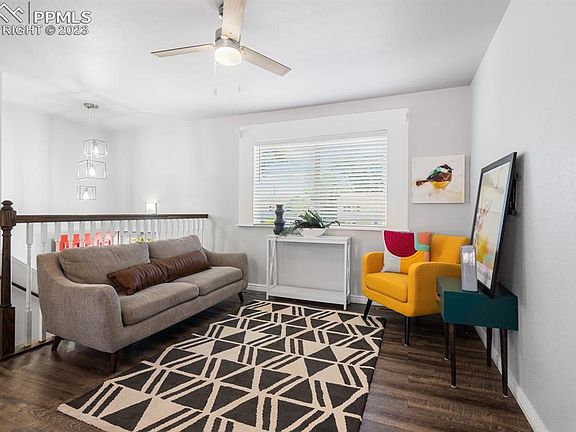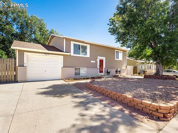 Bright and charming bi-level with open floor plan. Located on a quiet street with easy access to Academy Blvd & I-25, and a quick drive to both Fort Carson & the COS Airport. The interior has been freshly painted and features LVP flooring on the main level and bathrooms, updated light fixtures & ceiling fans, and AC installed in 2022 (yes!). The kitchen features a large granite island with overhang for additional dining space, stainless steel appliances and a pantry closet. Just off the kitchen is a walk-out to the expansive deck with plenty of room for a large outdoor table and grill. The spacious backyard is xeriscaped with upgraded turf (perfect for a game of corn hole), and hosts 2 large storage sheds. There are 2 bedrooms and a ¾ bath located both upstairs and downstairs, as well as a living room on each level, providing ideal separation for teenage children, or a roommate situation. Parking is no problem with not only an attached garage, but also an extended driveway and double door gate to the backyard allowing you to park a car or trailer behind a secured fence.
