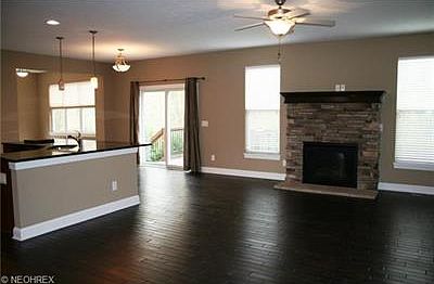 This home has the "wow factor" that you have been looking for! Hand-scraped birch hardwood floors throughout the family room, kitchen, and dining areas. Upgraded Kraftmaid cabinetry throughout the home, offering soft close drawers and granite in the kitchen as well as both full bathrooms. Kitchen boasts under cabinet lighting and glass tile back splash, stainless appliances, and large island with room for seating. Open floor plan allows for great entertaining space for your family or your guests. First floor master suite with generous walk in closet. Dining room has tray ceiling for added elegance. Floor to ceiling stone fireplace in the family rooms adds warmth and ambiance. Full basement has 9" ceilings and is plumbed for a full bathroom, with egress windows that allow for natural light to flow in. Rear deck with wooded view. Private cul-de-sac street with convenient access to shopping, schools, and highway access. Family friendly neighborhood!