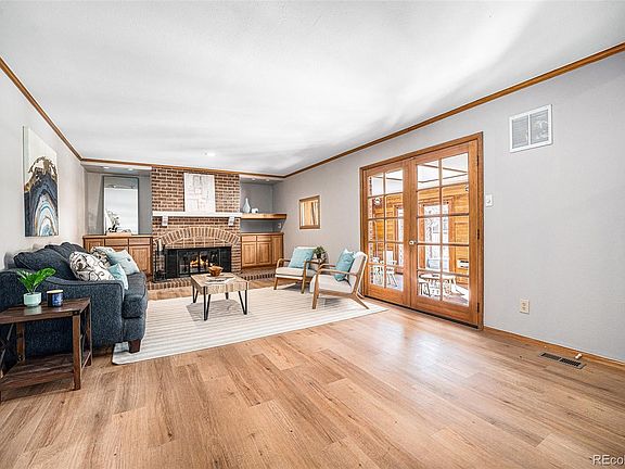 Upon entering, you’ll immediately notice the fresh new luxury vinyl plank flooring, freshly painted walls, and new carpeting throughout. The updated kitchen boasts brand-new stainless steel appliances (fridge is a couple years old), sleek granite countertops, and plenty of space for meal prep and entertaining. The open dining area seamlessly flows into the cozy family room, complete with a charming brick wood-burning fireplace—perfect for those chilly Colorado evenings.