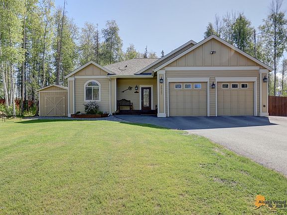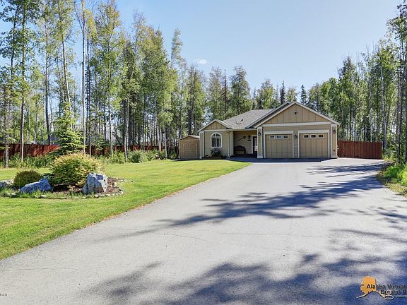 BELOW Appraised Value! Beautiful, maintained home is lovely subdivision with easy access to Wasilla. Enter into a nice entry open to high ceilings, spacious living room and a beautiful rock fireplace. The kitchen and dining area are open, bright and very nicely done with granite counters, stainless appliances, spacious counters and a breakfast bar. Dining area is adjacent and open