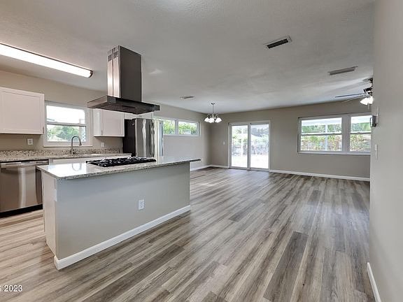 Welcome home to this beautifully renovated three bedroom, two bathroom home in Cocoa. This perfectly situated home is close to everything you need and to major roads. The interior and exterior have been freshly painted and it doesn't stop there. Upon entering the home you will find your new kitchen which features shaker cabinets, granite, and stainless steel appliances. The kitchen is open to the dining and living room areas which maximizes the space. Stunning luxury vinyl plank flooring has been installed in the living areas and bathrooms and new carpet in the bedrooms. Both bathrooms have been impressively remodeled and feature new tile, toilets, and vanities. The good-sized backyard is waiting for you and has a covered porch off the dining area. The gas water heater was replaced in 2023 and the windows have been previously upgraded. This home will not disappoint, book your private viewing today before it's gone.