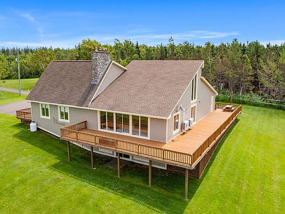 Discover the epitome of luxury and tranquility with this magnificent property situated on 7.4 acres of picturesque land, complete with a charming pond. This is a once-in-a-lifetime opportunity to own a stunning 7000 sq foot home spread across three levels, showcasing breathtaking views of the Stanley River and the ocean. Step inside and be captivated by the spaciousness and elegance that awaits. With 5 bedrooms and 4 bathrooms, this home offers ample space for you and your loved ones. The vaulted ceilings create an open and airy feel, while the two stone hearths add a touch of warmth and comfort. Calling all culinary enthusiasts! The chef kitchen is a dream come true, featuring top-of-the-line appliances and plenty of counter space for preparing and entertaining. Entertainment options abound in this home, with the lower level boasting a bar and dance floor. Host unforgettable gatherings and create lasting memories with friends and family. This property has seen numerous updates, including a new roof and siding just 8 years ago, ensuring peace of mind for years to come. The newer paved driveway adds convenience, while the separate workshop and garage provide ample storage space for all your hobbies and outdoor equipment. Imagine sipping your morning coffee or enjoying a glass of wine on the 125 feet of wrap-around decking, taking in the stunning views and relishing the peace and serenity that surrounds you. The pine ceilings add a touch of rustic charm, while the third floor overlooking the second level adds a unique architectural element to this already exceptional home. The location of this property is nothing short of spectacular. Close to the marina, restaurants, Charlottetown, and Summerside, you'll have everything you need just a short drive away. As if all of this wasn't enough, there is an incredible opportunity to purchase an additional 22.46 acres for land or subdivision development. The possibilities are endless!