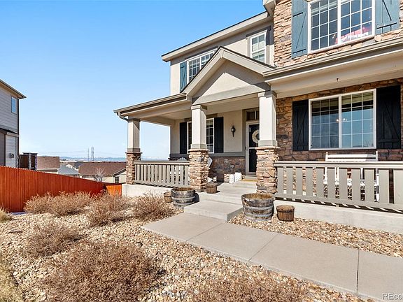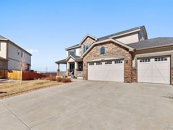 Welcome home!!! Impeccable Wheatlands home with captivating Mountain & Down town View's. You're greeted by an upgraded elevation with beautiful stone & large covered front porch. Main level features a 2- story foyer, beautiful wood floors, custom blinds, bedroom & office as well as a stunning gourmet kitchen with abundance of cabinetry, Expansive Island, stainless steel appliances, smart range and refrigerator, Granite counters, backsplash, double oven and wine cooler. Proceed upstairs to the generous master suite as well as 3 secondary bedrooms with walk in closets. The thoughtful design of the Basement is perfect for entertaining with indoor/outdoor sono speakers and a wonderful wet bar featuring a full kitchen, wine cooler, dishwasher and fridge. The basement bathroom has full resort style steam shower. Full Walkout basement with wonderful backyard retreat for your family gatherings. Over 20,000 landscaped square foot lot. Back yard features include wired landscape lighting, shed, covered deck with lighting,gas fire pit, sono speakers, putting green, and Bocce ball court. The garage features a golf simulator & custom built storage/locker/ mud room. Other features in the home are nest thermostats that are integrated wit the custom haiku ceiling fan, nest door bell camera and security system. BRAND NEW ROOF! Neighborhood amenities include, clubhouse, pool, playground, trash & common grounds maintenance. NEW YMCA within walking distance to be built in 2020. Nestled in the perfect location near Southlands Mall, restaurants, shopping, Aurora Reservoir, Wheatlands park, Buckley Air Force base, and easy access to E470, DIA, DTC. Located within Prestigious Cherry Creek School district. Colorado living at its finest!