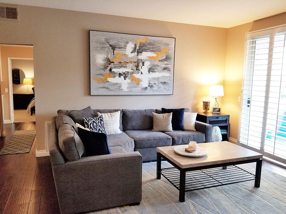 Beautifully upgraded 2 bedroom, 2 bath home with open floor plan and patio. First floor end unit condo with carport, EV charging stations and ample parking. Walking distance to restaurants, movie theater, grocery store and shops at The Center at Rancho Niguel (on Greenfield). Less than 10 miles from Laguna Beach, Dana Point, San Juan Capistrano and Irvine Spectrum. Easy access to the 73 Toll Road and 5 Freeway. Washer/dryer included. ADDITIONAL FEATURES: hardwood flooring, upgraded carpet in bedrooms, new central air conditioning unit, energy efficient quiet KitchenAid dishwasher, energy efficient water heater, plantation shutters, granite counters in kitchen and bathrooms, tiled patio, tall ceilings, recessed kitchen lighting, large master bedroom with en-suite bathroom and walk-in closet. APPLIANCES INCLUDED: refrigerator, front load washer, dryer. COMMUNITY AMENITIES: swimming pool, jacuzzi, clubhouse, exercise/yoga room, EV charging stations, assigned covered parking plus open uncovered parking. LEASE TERM OPTIONS: 6 months or 18 months. Tenant pays for electricity, water, gas and cable/internet. No smoking.