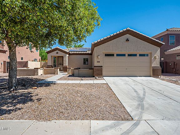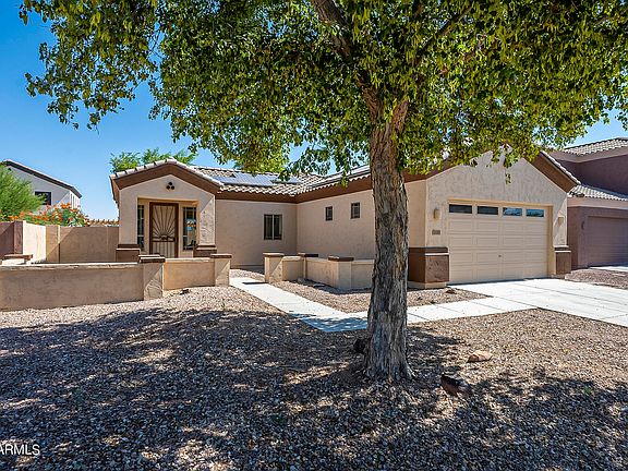 Your home sweet home is here! Remarkable single level home is now available in popular Buckeye. Providing gravel front landscaping, Owned Solar Panels & New HVAC. Welcoming interior is complete with 3 bed, 2 bath, living/dining area & neutral color palette throughout the house. Well maintained kitchen is a cook's delight with it's Stainless Steel matching appliances, recessed lighting, cabinetry with crown molding, granite counter-tops, & kitchen island. Inside this double-door master suite you will find a spotless full bath with dual sinks, separate tub, step-in shower and walk-in closet. Out the back you have a covered patio, Ramada, and so much potential for your gatherings. This incredible home will sell in a flash. Don't miss it!