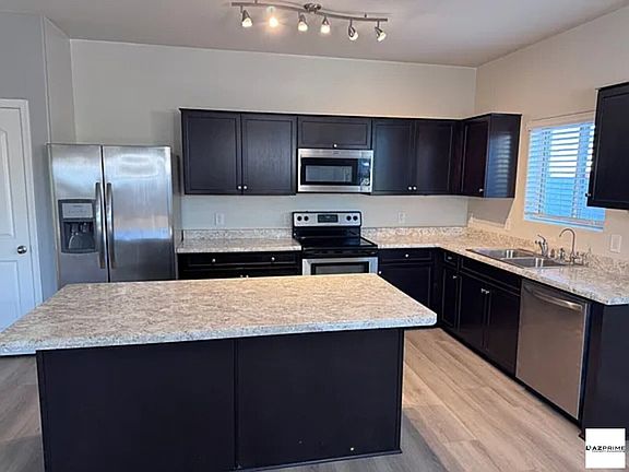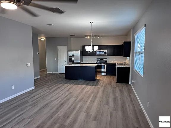 Amazing 4 bedroom, 2 bathroom house in Miller Park in Buckeye. Address is 25275 W. Nancy Ln in Buckeye 85326. Amenities included: wheelchair accessible, central air, central heat, dishwasher, brand new Luxurious Vinyl Plank flooring with updated modern baseboards, stainless steel appliances, washer and dryer in unit, updated kitchen, updated bathrooms, garage storage, 10'x12' outdoor storage shed, large backyard, landscaping included, corner house, and backyard mood lighting. No Utilities are included. Is pet friendly.