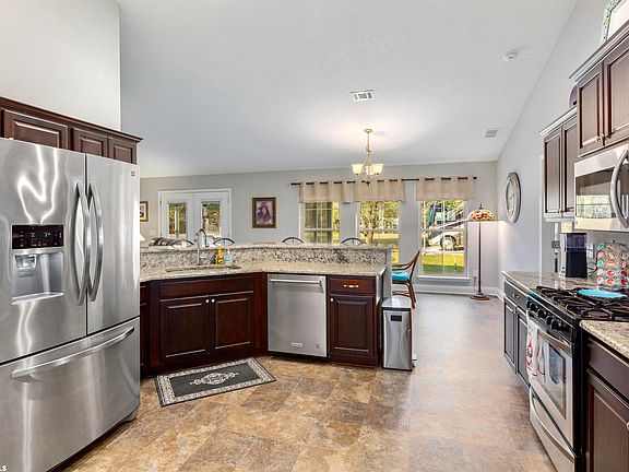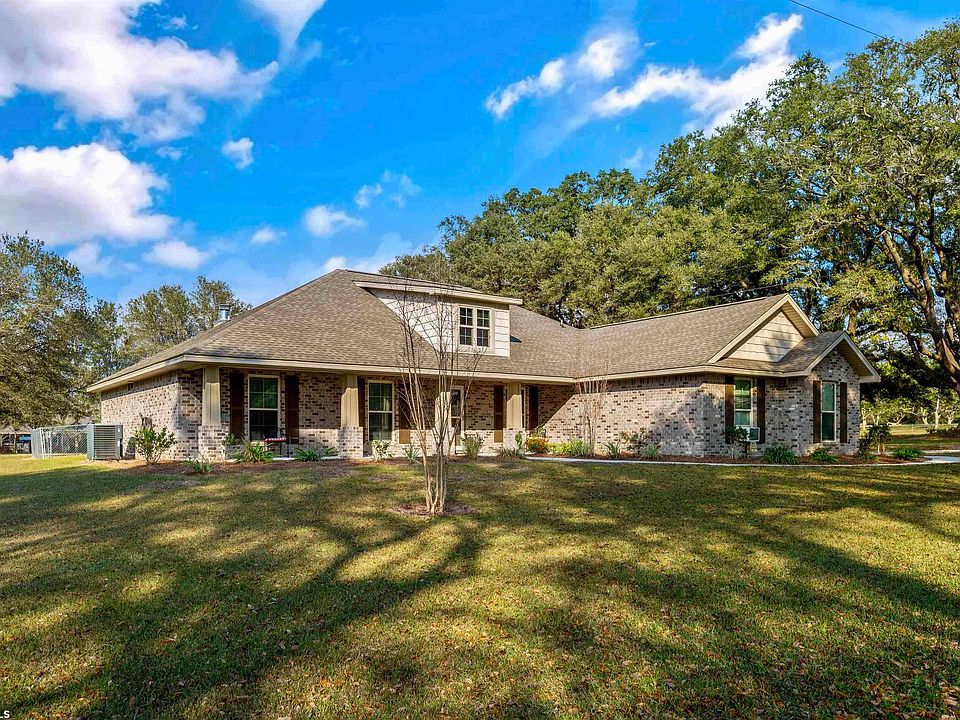This beautiful, custom built, 4-bedroom 2 bath, split floor plan home situated on 3 +/- acres located just outside of Robertsdale. This home offers the privacy of rural living, as well as easy access to I-10! Mature landscaping, fruit trees, privacy, convenience to all that Baldwin County has to offer. The primary bedroom will accommodate large furnishings, and the primary bathroom features a garden tub, separate shower, and a walk-in closet. The secondary bedrooms also offer ample closet space to meet your storage needs. The open floor plan with vaulted ceilings throughout the living room, kitchen, and breakfast area give the home an even roomier feel. There is a separate formal dining area as well. The kitchen has beautiful granite countertops, stainless steel appliances, and an abundance of cabinet space (the pantry is a must see). Just off the living and dining rooms, you’ll find a large, screened back porch that includes extended propane lines for attaching a grill and offers the potential for building an outdoor kitchen. The property also has a 24 ft. x 36 ft. RV shed that is 16 ft. tall and is equipped with water and electricity. It is wired for 50/30/110 and is just a few steps away from being a great Barndominium. Schedule you’re showing today! At this Price this Astonishing home will not last long.