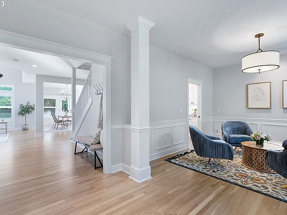 Tucked away on a serene and secluded drive in coveted Sherwood location, this thoughtfully updated traditional welcomes you to 5,000+ sqft of light-filled interior bliss sited on 2.5 acres of manicured, wooded surroundings that backs to a peaceful creek. The airy main level feat. beautiful white oak hardwoods invites to a grand foyer flanked by formal living/dining room and custom guest suite complete with stacked laundry in the attached bathroom. A sweeping entry guides you effortlessly to the beautifully remodeled kitchen featuring impressive wet bar, luxury Dacor appliances, and designer finishes. Walk-in custom pantry off of the kitchen is complete with a clever grocery door with access from the garage to make unloading easy! A 1,400 Sq. Ft. upstairs bonus living area (complete with kitchenette) leaves room for your imagination to run wild with plenty of opportunity to personalize! Storage is optimized with a massive unfinished attic and two separate garages, plus one pull-thru garage with RV/boat parking creating space for all your equipment and toys. Take in soothing sounds of nearby Rock Creek just steps from your back patio and enjoy peaceful views of private, forest-like surroundings on those legendary PNW summer nights from your very own backyard oasis. With access to top-rated Sherwood schools and only minutes to I-5, Our Table Cooperative, Costco, downtown Sherwood, and beautiful Oregon wine country, this show-stopping masterpiece is waiting to make your dreams come true! HOA is for road maintenance agreement only.