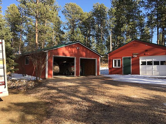 Rustic cabin built in 1930 nestled among mature Ponderosa Pine: This beautiful lot backs up to USFS land for added privacy and abundant wildlife viewing. This is a modest cabin with all new appliances – hot water heater, washer/dryer, refrigerator, stove, dishwasher, and ceiling fans. Design is 1980s cabin style, but fully functional and move-in ready. Have added split-duct heating/air system and have a gas fireplace in living room. Have spacious detached 2-car garage 24’0” x 32’6”, a second, heated detached 1 car garage/shop 23’ x 23’ and a separate “cabin” with gas heat and electric only with no bathroom. And after a long day soak in your hot tub for 5. All buildings have metal roofs in excellent condition. Don’t miss your opportunity to find your place here in the Black Hills. Property is selling “as is” so make an offer.