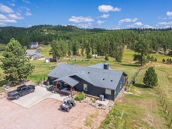 Discover your hidden treasure in the heart of the Black Hills– a horse lover's paradise awaits! Spacious custom-built home offers two levels of luxurious living space, meticulously remodeled to perfection. Floor-to-ceiling windows frame breathtaking panoramic views, flooding the home with natural light. For culinary enthusiasts, the chef's dream kitchen is a masterpiece. Open & bright kitchen seamlessly connects to dining area & sunroom.Multiple indoor & outdoor sitting areas provide endless opportunities for enjoying the serene surroundings. Sip morning coffee or evening wine on the expansive decks & patios while soaking in the beauty.Generously sized rooms & abundant storage throughout. The peaceful main level Master Suite ensures comfort & convenience. Office can easily transform into a bdrm.Basement has a large family room, 2 bdrms, a bath, &le storage.Low maintenance -featuring Hardie siding, heat pump, poured concrete w/foam bsmnt, Trex decking,& more.Fenced backyard perfect for pets. 30x40 shop garage building w/ full bath.RV hook-ups for visiting friends. Property fenced for horses & has an automatic waterer & lean-to. Nearby USFS lands provide access to spectacular riding. Additional fenced area, too. 4 miles from Custer, with its new hospital, excellent K-12 school, county courthouse, active Arts Council, & great restaurants. Ideal base for exploring the Black Hills. SD's business-friendly environment & absence of state income tax make this the land of the free!