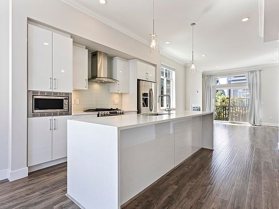 Welcome to ZIRCON by Hayer. This bright & spacious 3bed + FLEX + 2.5bath END unit home is over 1600sqft and features tons of windows and 10 foot ceilings on the main floor to really let the sunlight in! This home features a stunning gourmet kitchen w sleek flat panel European inspired cabinets, Samsung s/s appliances with slide-in gas range, stunning quartz c/t & upgraded light fixtures. The bathrooms are custom designed under-mount vanities with double bowls in ensuite. There is a huge side yard for the kids and pets to enjoy. Bonus huge flex room in the garage can be office, rec room or additional bdrm. Unrivaled location, excellent school catchments and all of South Surrey's amenities within a short walk. This home has it all - don't miss out on this gem. OH: SAT&SUN, JULY 24&25 2-4PM.