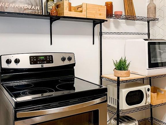 This charming 2Bdr/1Ba brick home sits on a double corner lot, located conveniently near shopping, popular restaurants, schools, and parks. Not only beautifully updated, this home has a lot to offer; central ac, real hardwood floors, brand new set of Samsung smart washer & dryer, newer kitchen appliances, a large 2 car brick garage with built in work-bench & shelves, and a very large covered patio for hours of outside relaxation - and no HOA! This layout is the best for this size of home and rotates around a large center storage- made of multiple closets, built ins, and deep cabinets. Roof, water heater, and furnace- are all under 5 years old. A stone fenced-in backyard and a large doggie door on the backdoor make this a great option for dog lovers.