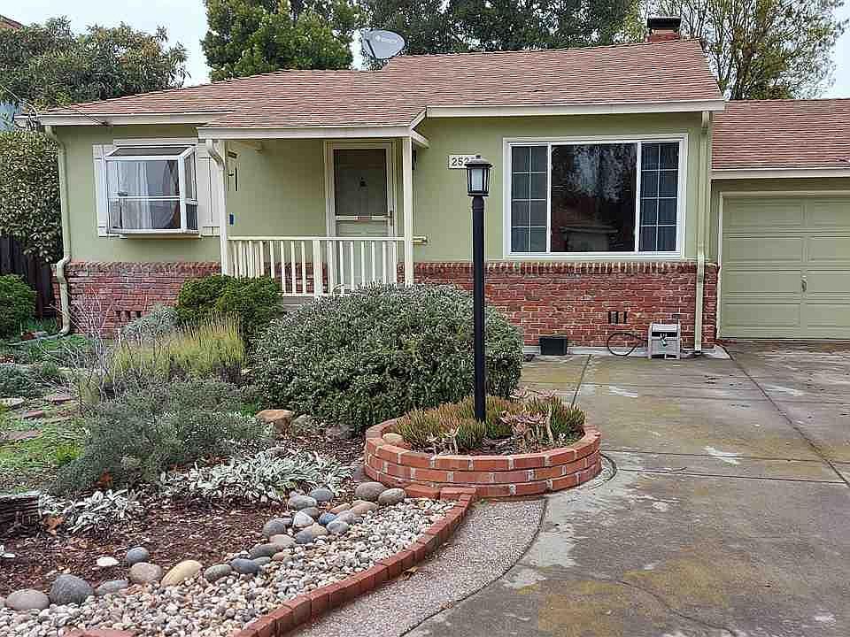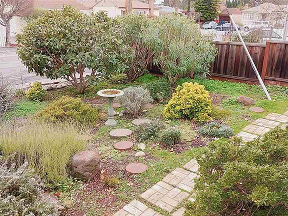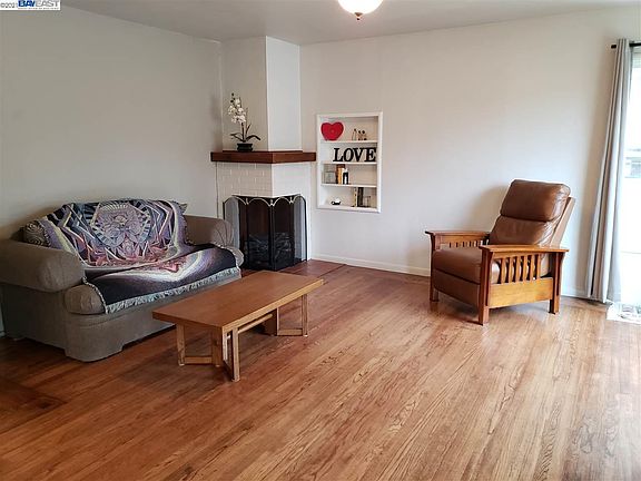 Meticulously maintained. 4 rooms have closets. One of those rooms has a door that leads to and from the garage. Delightful covered deck in side yard makes for a serene place to relax off of the master bedroom. Light and bright eat-in kitchen with recessed lights in ceiling. Kitchen door leads to side patio and back yard. Garden window. Breakfast bar opens to living room with fireplace. Dual pane vinyl windows. Large master bedroom has jetted tub in bath. Located on a court. Walking distance to Trader Joes. BART and 580 access nearby.