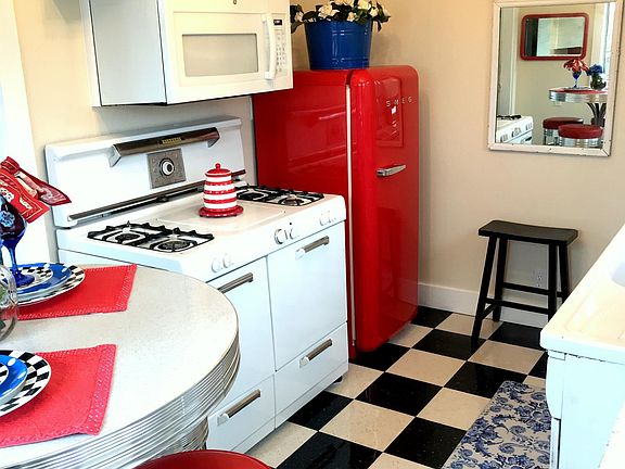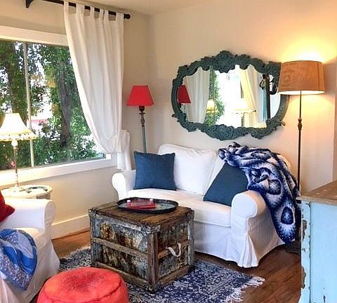 This is a furnished rental. Blue Bungalue @ The Whiskey Hotel, often referred to as The Funky Penthouse, resides at the very tippy top of its very own staircase. He shares NO walls and enjoys sunshine views from all four corners of the earth. Recently refurbished, this 1950s apartment is NOW the CAT'S MEOW. Decorated with an eclectic sense of style and comfort, this abode bodes very well for those that seek something ''a little different''. Bursting with hand picked antiques, antiquities, and other treasures, this is a trippy tree top nest.