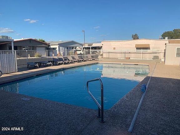 MOTIVATED SELLER AND NO LOT RENT! Nice, double wide manufactured home in 55+ community BUT with board approval new owners may be under 55 but all occupants must be at least18. This is a 1.045 ACRE co-op community, and fees are $1200 a YEAR! That's it! It doesn't get more affordable than this! Water, sewer and trash included. This community features an Orange and Grapefruit grove, heated pool, shuffleboard, pool tables, pickleball, recreation building/clubhouse with events and common parking for your RV. This 2 bed 2 bath 960 sq ft home is just waiting for your personal touch. Corner lot with 1 covered car carport/patio and an 8 x 10 storage shed. Furniture and appliance included. This is a great co-op community! A HIDDEN GEM in north Mesa. Welcome home!