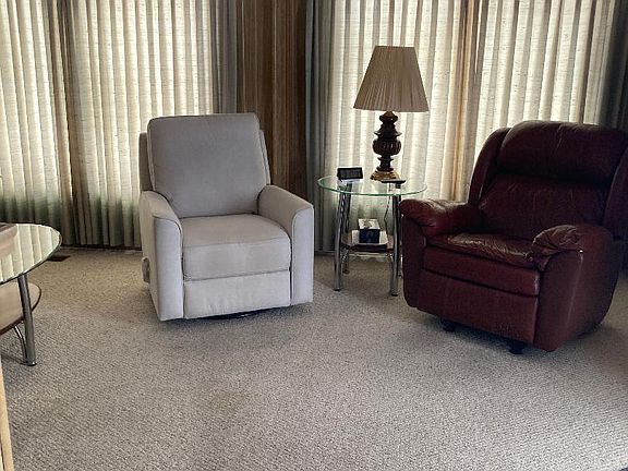 Adorable Doublewide1 bedroom, 1 bath, manufactured home. You OWN THE LAND Formerly 2 bedrooms, can be converted back to 2 bedrooms Fully furnished and ready to move in. EXTRA large lot, you can replace this unit with a new unit 5 years or newer. This adult community is a corporation and each unit is allowed 1 vote. Street maintenance, water, sewer, garbage, and land taxes are paid thru hoa dues.1 person must be at least 55. all applicances included. no rentals allowed community pool, shuffleboard, pickle board activies, new heat pump 12/22, new carport 12/22, bathroom updated.hoa dues $1200 year. 2 large storage sheds on lot. pool room at club house. VERY well kept unit. A BARGAIN.