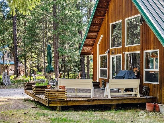 The perfect getaway for you to enjoy the great outdoors and all the recreational activities you can imagine just outside your door! Move in ready cabin with vaulted ceilings and an open floor plan. Large deck for outdoor entertaining. Gas fireplace to cuddle up around after a fun day of snowmobiling right from your door! All level 1.12 parcel of land to spread out on. Detached garage has a bonus living area complete with kitchenette & bathroom! Community access to the Wenatchee River for summer time fun and rafting. You are literally minutes away from golfing, cross country skiing, swimming and boating on Lake Wenatchee and fishing at Fish Lake! This will be your year round happy place to enjoy the good life. All furnishings included!