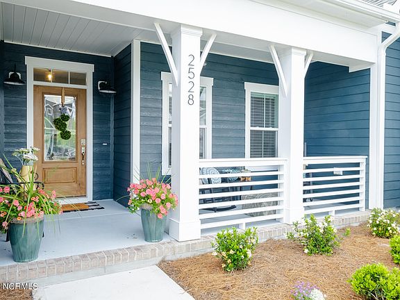 Looking for a newly built home that also encompasses charm and all the special little details? Perfectly situated just 5 miles from Historic Downtown Wilmington and 10 miles from Wrightsville Beach, look no further than 2528 Lakeside Circle. This 3 bedroom plus bonus room with private full bath home, completed in 2024, has all the details of an upgraded home that you could ever wish for! The Craftsman trim package includes wainscoting accents in the foyer, dining area and kitchen island as well as beautiful, exposed beams that lead you from the spacious great room all the way to that chefs kitchen you've always dreamed of! The 30'' gas range with a stainless steel hood, 42'' upper wall cabinets, shaker cabinet molding and under cabinet lighting give this kitchen a very high end feel . The quartz kitchen island overlooks the spacious great room that is perfectly completed with a modern fireplace trimmed with shiplap, wooden built ins and the real showstopper - the center meeting sliders that lead out to a screened in back patio with the most amazing view of the sunset the lies just past the tree line that borders your quarter acre yard! Brand new fully fenced in backyard, irrigation, tray ceilings, 1st floor primary, wooden shelving, beautiful community pool, lakefront gazebo and picnic area, sidewalks and even a dog park for your furry friends! I could go on and on but you should just come take a look for yourself!