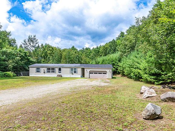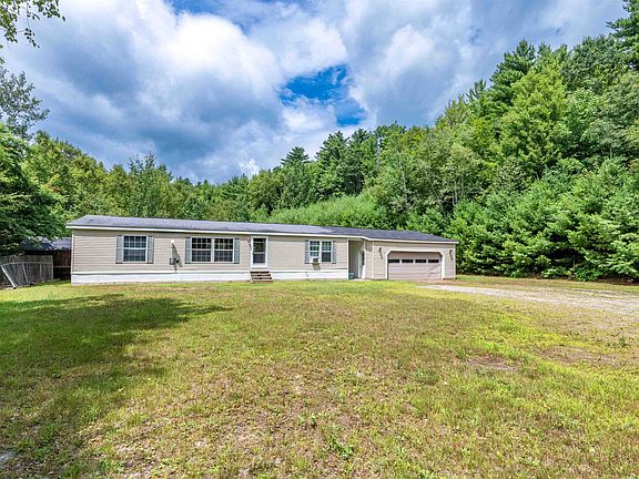 This charming 4-bedroom, 2-bathroom manufactured home offers a private setting with several recent renovations and improvements. The property boasts a secluded location with an open landscape surrounded by trees. A two-bay garage is attached for convenient parking and storage. The home has been recently renovated, with some new siding, a new roof over the garage, and numerous interior upgrades, including new flooring, interior paint throughout, a new heating system, plumbing upgrades, and skirting replacement. Located in Haverhill, NH, it's conveniently close to amenities and recreational activities such as restaurants and shopping, as well as recreational opportunities including skiing, hiking, snowmobiling, and access to rivers and ponds for kayaking, fishing, boating and more.