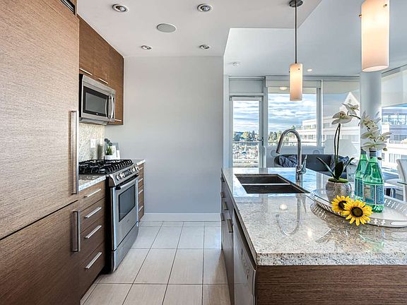 Welcome to the trendy "Pulse" 5th-floor sub penthouse North West facing corner unit with breathtaking views of the city and mountains. Fully RENOVATED this 2 bed 2 bath condo has a contemporary open design, floor-to-ceiling windows, built-in Control4 sound system, automatic Somfy blinds, 9ft ceilings that create a bright spacious environment. The gourmet kitchen boasts sleek modern cabinetry, Bosch appliances, gas range stove & granite counter island. BBQ gas connection on patio, in-suite storage, 1 parking, rentals and pets ok. Buy with confidence in this modern concrete building by Bastion Developments. Located in Kitsilano's desirable Arbutus Greenway neighbourhood - just steps from Kits beach, future W Broadway Subway & the best restaurants & shopping. Book your private showing today!