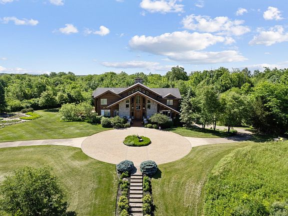 Welcome to Farm Nienté, a luxurious alpine log home on 165+ acres in Ohio's farmland, perfect for retreats, family gatherings, or weddings. The lodge features approx. 7,800 sf of living area with 6 bed/5 bath/2 Half baths. Entering you are welcomed by vaulted ceilings and a gorgeous stone fireplace. The gourmet kitchen with granite countertops features dual dishwashers and a Viking Range. The finished walkout basement includes a wine cellar and bourbon/wet bar. Outdoors, enjoy a grilling area, screened patio, and huge deck. The property includes a stocked lake, tillable and wooded acreage teeming with wildlife. Ideal for the equestrian lover with a 3 stall barn and bridle trails. Sold fully furnished, this estate is a serene escape offering ''Country Life Without a Care''
