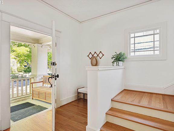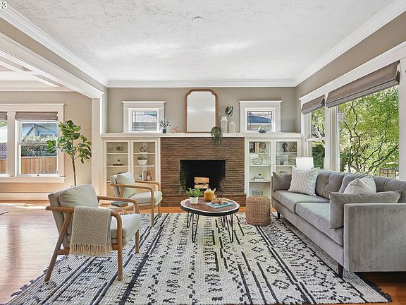 Gracious 1913 Rose City Craftsman with open LR/DR, fireplace, hardwood floors. Newly remodeled eat-in kitchen w/Bosch gas range and microwave, Fisher Paykel refrigerator, Silestone counters, Delta stainless steel sink and faucet, and Optiwood floors. Upgraded bathrooms retain vintage look. Flexible room on main level could be home office, den or bedroom. Spacious primary bedroom suitable for king size bed, and 2 additional bedrooms on upper floor. Fenced work yard keeps outdoor projects out of sight from lush backyard and brick patio ready for entertaining. A short walk to a spectacular view of Mt Hood, Rose City golf course, community park and nature trail, welcoming neighbors, and local eateries and businesses. What are you waiting for? [Home Energy Score = 2. HES Report at https://rpt.greenbuildingregistry.com/hes/OR10183405]