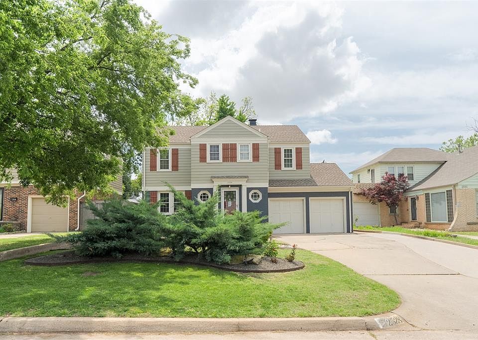 An American classic with clean-cut good looks in coveted, convenient Cleveland. This house has a little bit of swagger, as it should. Built in 1939, its lines are simple and solid, with friendly, symmetrical details like a pair of porthole windows, rough-hewn shutters and a khaki, white and slate exterior color scheme. Front landscaping, partially designed to be low-water, complements it all. What a treat it would be to come home to every day! The driveway is wide, and there’s a two-car garage, a luxury in homes of this era. Inside, the beauty of well-kept original hardwood floors, fresh white walls and new, dark beam-framed doorways is calm and bright. Anchoring the living room is the classically carved original fireplace with a slate gray tile surround. A matched pair of windows lets the sunshine in. The first floor is open-plan, with great flow. The kitchen makes the most of its historic aesthetic, with smart updates and conveniences. Open cabinetry and butcher block countertop on one side, traditional cabinets and handsome original tile counter and backsplash on the other. We love the wall color in the powder bath. It’s that high-style, soft pink-brown color. Upstairs, a spacious landing, three good-sized beds and two full baths. The primary bath’s resplendent original tile, in a happy shade of green, will brighten every morning. Throughout the home, you’ll delight in period details like built-in linen closet, bookcases and window seat. All are well cared for, freshly painted and pretty. Laundry is upstairs. So much charm in the back yard. There’s a fire pit, large pergola, topped with temperature-lowering polycarbonate, great for dining and lounging beneath and a second, sunny outdoor living space. A stone path encircles the perimeter and round, brick-trimmed flower beds surround several mature shade trees. Easy access to downtown and highways; close to the fun of the Plaza District, Uptown and more. Can’t you just imagine life in this wonderful home?