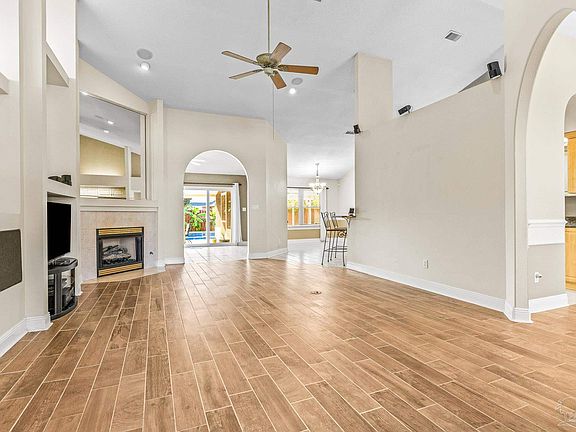 Back on the market due to no fault of the sellers. Welcome to your own private paradise in King Ridge Estates! This corner-lot home is a true gem, boasting custom features and amenities that offer Florida living at its finest. Upon arrival, you'll be captivated by the property's impeccable curb appeal. Lush lawns, palm trees and decorative brick accents set the stage for what awaits within. Step through the front door and you're greeted by the warmth of wood-look tile flooring, soaring ceilings, custom built-ins and a cozy fireplace that creates a welcoming ambiance. Adjacent to the living area is the kitchen featuring pantry, granite countertops and a breakfast bar perfect for casual meals. Transition seamlessly from the kitchen to the breakfast nook or the formal dining room where memories with loved ones are sure to be made. The generous master suite is tucked away for ultimate privacy. Its attached bath boasts a walk-in shower, jetted tub, dual vanities and large walk-in closets. This thoughtfully designed home features three additional bedrooms and a guest bath, offering ample space for family or visitors. One of the bedrooms, discreetly positioned at the back of the house, would be ideal for a home office. As you step into the sunroom, you're enveloped by natural light and views of your own backyard oasis. Escape to your personal haven, complete with lush grass, fruit trees and a fire pit - perfect for evenings with friends and family. The highlight of this outdoor sanctuary is the 20' x 40' saltwater, in-ground pool, with new liner, pump and Polaris, beckoning you to cool off on hot summer days. Plus, enjoy peace of mind with a new roof and impact-resistant windows ensuring your home is protected. Whether you're lounging beneath the covered patio, enjoying a dip in the pool or unwinding in the screened-in patio, every moment spent in this tranquil space is sure to be great! Don't miss your chance to own this slice of paradise! Schedule a private tour today!