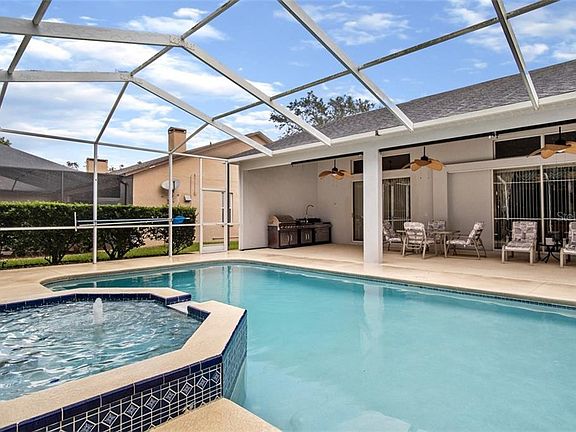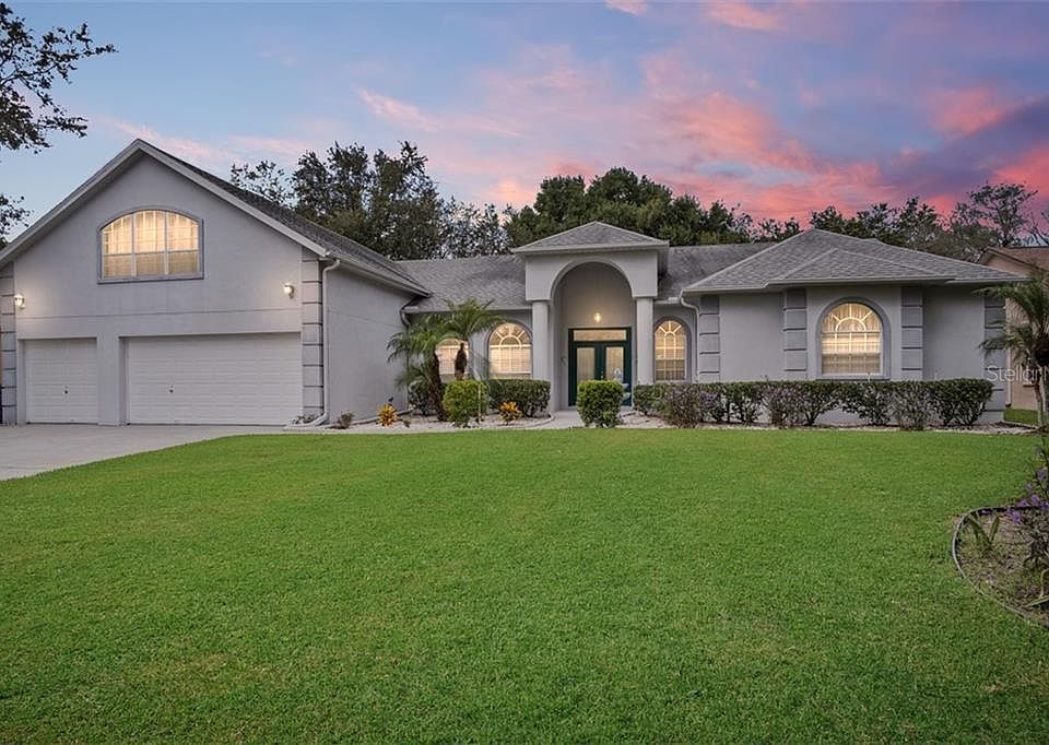 Custom Built Pool Home has 5 bedrooms(One Large Upstairs Bedroom Could be Used as a Bonus Room) Plus Office, 3 Baths, 3 Car Garage, 3,772 Square Feet, Dining Room, Family Room, & Separate Living Room. Formal Entrance & Dining Room has Designer Bamboo Flooring and has built-in shelves with soaring ceiling. The living room has transom windows, high ceilings and glass sliding doors with a great pool view. Gourmet style kitchen with solid wood cabinets, granite counter tops, center island with cook-top, additional range;all stainless appliances. Large snack bar that's open to the family room & makes the perfect entertaining spot with high ceilings, built-in entertainment area, cozy wood burning fireplace and access to screened lanai. Wet bar area with sink, refrigerator and wine storage. The master bedroom offers Bamboo wood floors, high ceiling, private access to lanai & walk-thru closet. The master bathroom has large vanity, jetted soaking tub and glass enclosed separate shower. Office/den area that's close to the master bedroom and is perfect for studying or home office. Second level 20x16 bonus room is the perfect space for movies or family game area. Escape to your private retreat and dip in the sparkling pool & lounge area with spa and outdoor kitchen and grill. Conveniently located to top rated schools, shopping and great restaurants. Easy access to I-75 and crosstown expressway. Only 35 minutes to Tampa International Airport & 60 minutes from Orlando, Disney.