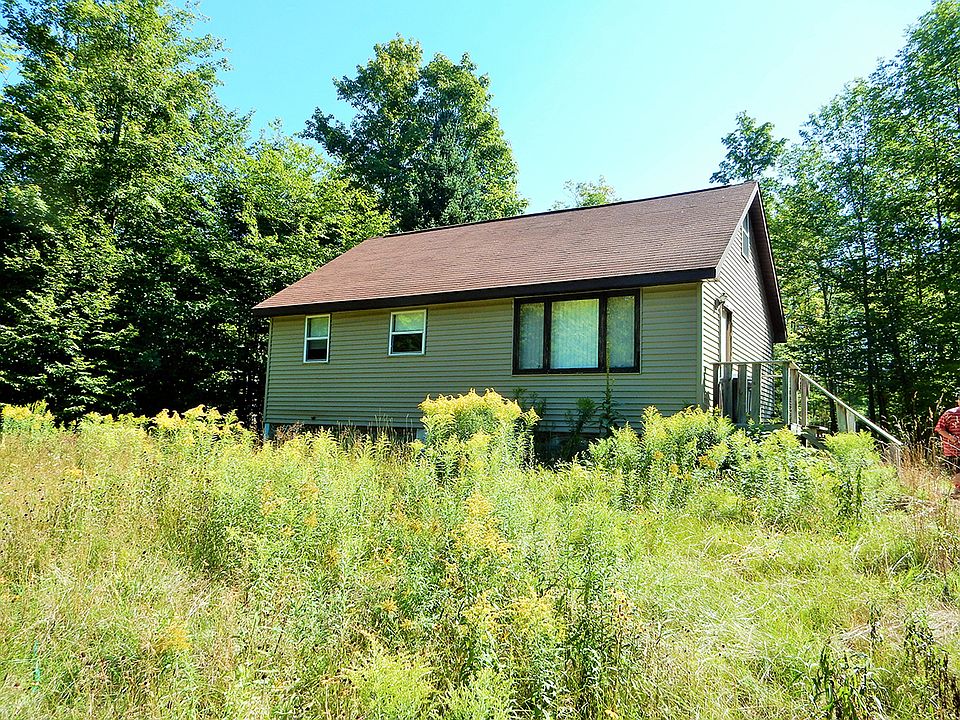 Built in 2000, this beautiful vinyl sided cabin on 9 acres has 3 bedrooms, 1 bath, and a full loft upstairs. Knotty pine tongue and groove paneling give it that up north feel. Could easily be a year round home. Power available at road. Drilled well and septic, 7' x 12' generator shed with 2 generators (one like new) with remote start inside the cabin. Includes kitchen range and gas refrigerator. Quiet rural setting ensures peace and serenity. Gated access, to be shown by a licensed agent.