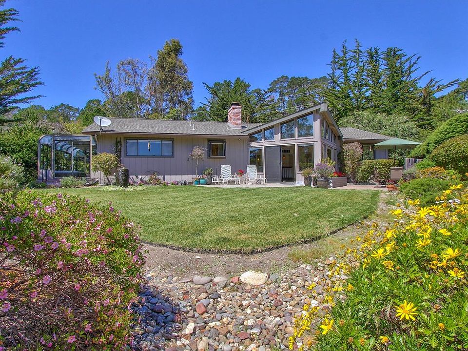 Inviting 3 bed, 2 bath home sits up on Outlook Dr. with lots of light streaming through. Spacious sunken living room boasts high ceilings, large windows, cozy fireplace, & outdoor access to the beautiful yard and patio with views of Carmel hills. The kitchen/family room combo makes wonderful space to gather and cook while adjacent dining room opens out to living room area. Bedrooms are located on one level with master featuring ensuite bathroom and direct access to sun room with hot tub. Laundry room, 2 car garage, wet bar, and lovely neighborhood make this home a spacial Carmel find. Move right in or update to your taste!