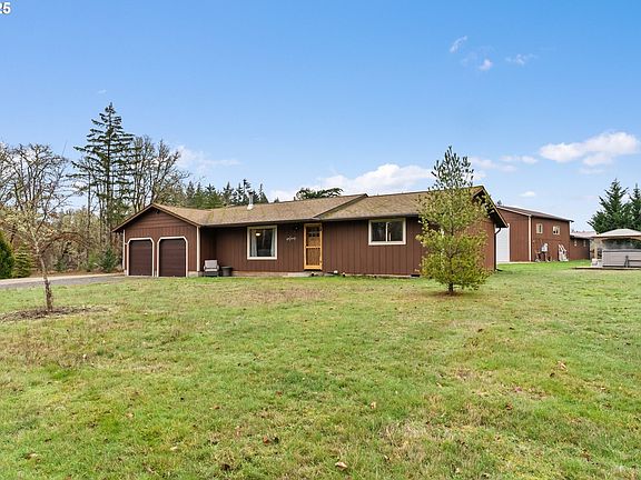 Nestled on 4.36 acres of flat, peaceful land, this property offers the perfect blend of relaxation and practicality. Inside the 1,008-square-foot home, you’ll find a cozy cabin ambiance featuring 2 bedrooms, 1 spacious updated bathroom, and a certified woodstove as well as a ductless heat pump. Car enthusiasts and hobbyists will appreciate the multiple shops, including a two-story 24x40 shop with a 10x24 office, an additional 3-bay storage shop, and a separate storage building ideal for wood, pool equipment, or other essentials. One shop is equipped with a bathroom, washer and dryer, and separated spaces, offering potential for transformation into a second living space or ADU. The property also includes a 2-car garage and covered RV parking with 30-amp electrical plug. The outdoor space is just as remarkable, featuring an expansive, level yard, a beautiful gazebo, an above-ground pool, and a relaxing hot tub. The gated, paved driveway adds both privacy and convenience,as well as a high-producing well provide added peace of mind. Located just 10 miles from the Eugene Airport and minutes from Fern Ridge, this property combines the best of country living with easy access to town. With so much charm and potential, this is more than a home—it’s an opportunity. Schedule your tour today!