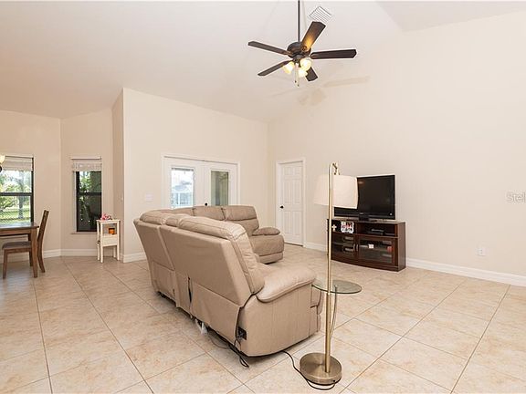 BUILT IN 2017! LIKE NEW MOVE-IN-READY 3/2/2 CUSTOM HOME IN HIGHLY SOUGHT AFTER DEEP CREEK WITH COUNTY WATER AND SEWER! This beautiful home features open floor plan with high ceilings, tile flooring throughout, spacious kitchen with granite, stainless appliances, tile backsplash, breakfast bar, closet pantry, casual dining area and French doors that open to screened lanai. Master suite offers tray ceiling, access to lanai, walk-in closet and private bath with dual sinks and roman shower. Additional features include 2 guest bedrooms, separate guest bath, inside utility, hurricane protection, quiet cul-de-sac street, greenbelt views for added privacy and stone exterior features that add to its charm. Open lanai off living room leads into fenced backyard great for family pets. Plenty of room for a pool. Friendly deed restricted neighborhood close to I-75, restaurants, shopping, schools, boating, golf and short drive to SWFL gulf beaches. This property won't last long! Call for your private showing today!