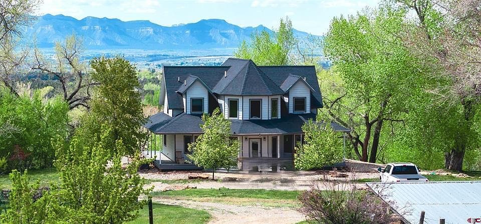 This Modern yet Distinctive Victorian home offers 3 bedrooms/ 3 baths on 17.85 acres with southern exposure, capturing expansive views and sparkling night lights. NO COVENANTS or HOA and your own PRIVATE ACCESS off the county road. This property is ideal for enthusiastic horse lovers. The setting boasts gorgeous trees, wooded areas, pasture (some of the area’s best soils), three separate well-established areas for your horses, two ponds (one seasonal that fills up by the neighbors runoff from irrigation) one is year around that has 3 access points for your livestock, a sprinkler system installed for irrigation, fully fenced and cross-fenced. Montezuma Valley Irrigation water available to purchase or lease from owner. The barn includes electricity and a frost-free hydrant for easy watering, three stalls with one stall connecting to a 12’ X 60’ fenced exercise area. Also, one more stall that can be opened to a small area of the pasture. You will also love the round training pen in the SW corner of the property. An oversized two-car detached garage with workspace, three-car carport, storage areas. The two-story, 2,176 sq. ft. home features a full wraparound Trex deck for 360-degree enjoyment of the surrounding landscape. Inside, the gourmet kitchen stands out with Thermador appliances, a dual-fuel professional range, built-in column refrigerator and freezer, a large pantry, and custom slide-out cabinets and shelving. The open concept living, dining, and kitchen areas create a true “Great Room” atmosphere, highlighted by Andersen windows, Hunter Douglas blinds, granite countertops, custom light fixtures, LED recessed lighting, and hickory floors throughout. Matching granite throughout (kitchen, bathrooms and laundry) is 3cm. Primary bath features a large free-standing porcelain tub and a walk-in tile shower. Upgraded one-piece toto toilets in all bathrooms. The home was built with efficiency in mind — featuring wraparound foundation insulation, extra-insulated ceilings, and crawl space insulation, keeping electric bills around $150 or less per month. The garage is equipped with 50 AMP breakers, making this property as functional as it is beautiful.