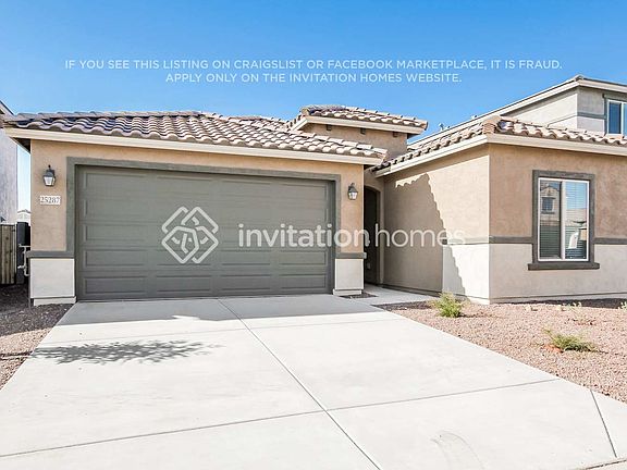 Lease this home and get more from Invitation Homes professional property management. This home comes fully loaded with quality amenities, must-have services, high-end tech and ProCare professional maintenance. Your estimated total monthly payment is $2058.90, which includes base rent and required services. Base rent varies based on selected lease term. Apply for select homes by 7/25 to get your first full month of base rent free. *For a detailed price breakdown, please refer to each listing. This home is part of Copper Falls, a thoughtfully planned community. Learn More about what Copper Falls has to offer. Copper Falls offers newly built 3 and 4-bedroom homes for rent in the West Valley, blending modern living with community charm. Each home features granite countertops, stainless steel appliances and a private, fenced yard, perfect for pets. Residents enjoy access to two neighborhood parks, a greenbelt with trails, a playground, a basketball court and picnic areas. Located in scenic Buckeye, you'll enjoy outdoor adventures at White Tank Mountains, and shopping and dining at Sundance Towne Center. At Invitation Homes, we offer pet-friendly, yard-having homes for lease with Smart Home technology in awesome neighborhoods across the country. Live in a great house without the headache and long-term commitment of owning. Discover your dream home with Invitation Homes. Our Lease Easy bundle which includes Smart Home, Air Filter Delivery, and Utilities Management is a key part of your worry-free leasing lifestyle. These services are required by your lease at an additional monthly cost. Monthly fees for pets and pools may also apply. Home Features and Amenities: Air Conditioning, Fenced Yard, Garage, Granite Countertops, Kitchen Island, Long Lease Terms, Open Floorplan, Patio, Pet Friendly, Primary Bedroom on Main, Recessed Lighting, Single Story House, Smart Home, Stainless Steel Appliances, Tile, Washer & Dryer, and professionally managed by Invitation Homes. Neighborhood Features and Amenities: Basketball Court, Park, Playground Invitation Homes is an equal housing lessor under the FHA. Applicable local, state and federal laws may apply. Additional terms and conditions apply. This listing is not an offer to rent. You must submit additional information including an application to rent and an application fee. All leasing information is believed to be accurate, but changes may have occurred since photographs were taken and square footage is estimated. Furthermore, prices and dates may change without notice. See InvitationHomes website for more information. Beware of scams: Employees of Invitation Homes will never ask you for your username and password. Invitation Homes does not advertise on Craigslist, Social Serve, etc. We own our homes; there are no private owners. All funds to lease with Invitation Homes are paid directly through our website, never through wire transfer or payment app like Zelle, Pay Pal, or Cash App. For more info, please submit an inquiry for this home. Applications are subject to our qualification requirements. Additional terms and conditions apply. CONSENT TO CALLS & TEXT MESSAGING: By entering your contact information, you expressly consent to receive emails, calls, and text messages from Invitation Homes including by autodialer, prerecorded or artificial voice and including marketing communications. Msg & Data rates may apply. You also agree to our Terms of Use and our Privacy Policy.