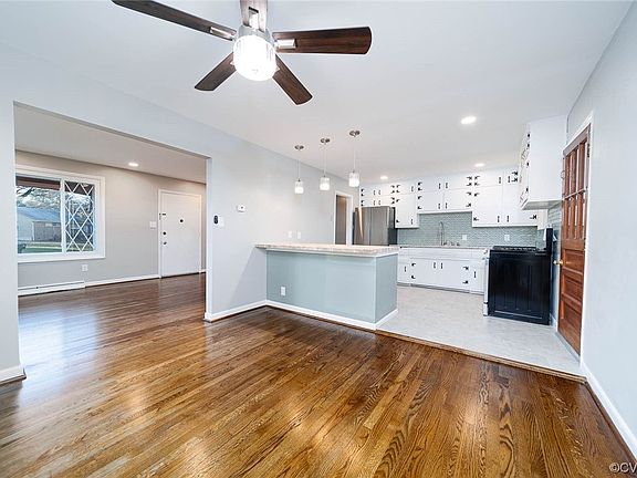 The beautifully remodeled kitchen has granite countertops, new appliances, a large island, and a neutral backsplash. Also, the crawl space has been encapsulated, and the entire exterior has been freshly painted for your peace of mind.