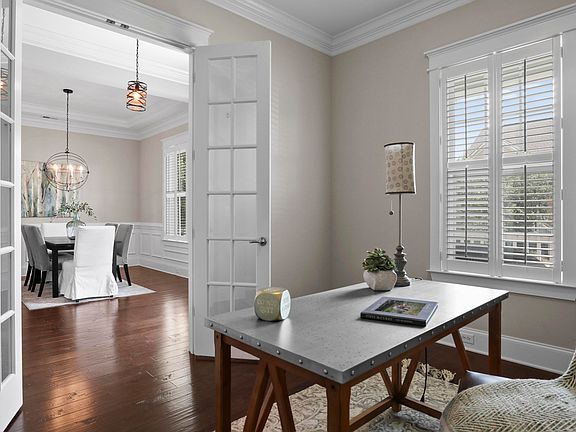 This spectacular home shows like a model; expect to be impressed! Iconic Charleston double front porches with gas lanterns provide a warm welcome into this low country home. Three bedrooms plus a dedicated office, huge media room and an open loft provide plenty of space for everyone! Ten-foot ceilings and nine-foot doors on the 1st floor give this home a grand feel! Upon entry to the foyer, the floorplan opens to a formal dining room with tray ceiling and wainscoting. Opposite of the formal dining room is the home office framed by glass french doors. In the family room you will find a gas fireplace, which is adjacent to a bright and spacious gourmet kitchen. This kitchen is the welcoming heart of the home! Tall light gray cabinets with crown molding are accented by several glass cabinets. The kitchen has beautiful granite countertops, classic subway tile backsplash and under-cabinet lighting. Pendant lights illuminate the large center island with gas cook top and seating for casual dining. Stainless steel appliances all convey, including a new (6 months old) dishwasher and KitchenAid French door refrigerator. The breakfast area overlooks the side yard, which is fenced and offers plenty of space between you and your neighbor. The primary bedroom is conveniently located on the main level and features a tray ceiling, beautiful crown molding and a bay window. The primary bathroom features dual sinks with granite countertops, tiled stand up shower with frameless shower door, and a large soaking tub. Space is maximized in the walk-in closet thanks to the custom built-in cabinetry. The laundry room is conveniently located downstairs next to the primary bedroom. The front loading washer and dryer will convey! Hardwood floors span the entire 1st floor and staircase leading to the 2nd floor. Plantation shutters have been installed throughout the home. Enjoy the expansive and peaceful screened porch with Bahama shutters for ultimate privacy! On the 2nd floor is an open loft which provides access to the expansive porch off the front of the home. Double doors welcome you into the media room. This large and versatile space can be used as a workout room, children's playroom, movie room, or 4th bedroom! You will also find 2 guest bedrooms on the 2nd floor as well as 2 well-appointed bathrooms. Both bathrooms have granite countertops with white cabinetry, tile floors and tiled showers with tubs. The backyard is fully fenced and has stone pavers to the 2-car detached garage. The energy efficient tankless water heater provides endless hot water. The home comes complete with gutters and a termite bond. Daniel Island is conveniently located near I526, the airport and just 20 minutes to downtown Charleston. Daniel Island is a resort-style community with sidewalks and walking trails throughout. Shops, restaurants, churches, schools, library, 3 community pools, and medical offices all within a golf cart or bike ride away!