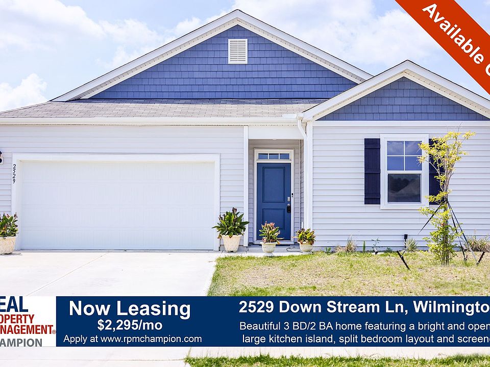 This beautiful 3 BD/2 BA home features an open floorplan with sunny rooms and LVP in the main living areas. The kitchen includes a large island with breakfast bar, granite counters, full sized pantry and sliding glass door access to the screened porch. Appliances include stainless steel refrigerator, range, dishwasher and built-in microwave. The split bedroom layout allows privacy for the master bedroom which includes a private bath with double sink vanity and step-in shower. The two guest rooms are conveniently located to the second full bath. A laundry room, complete with washer and dryer for your convenience, and attached 2-car garage complete this lovely home. Situated in the Riverside community, just 5 minutes from Wilmington International Airport, 15 minutes from Wrightsville Beach, and 7 minutes from downtown Wilmington, this location provides easy access to all the area has to offer. Don't miss the opportunity to make this house your home!