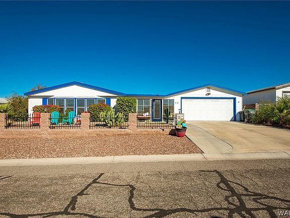 Just dropped price $20 000. This home has a lot to offer. 2 fully finished AZ rooms add an additional 800 sq feet for a total of nearly 2000 square feet. The finished AZ rooms are 25 x 15 and 28 x 9, air conditioned and open to the back yard where you can enjoy the hot tub and pergola with deck. Backyard has artificial turf on the entire backyard. Sprinkler system front and back on a timer. Great family/rec room areas for relaxing or entertaining. Featuring 2 bedrooms and 2 baths in main home. Master bedroom has walk in closet. The kitchen is great with all stainless appliances all less than 1 years old remaining with home. Dishwasher, french door on fridge, air fryer convection in stove, new water softener. Washer and dryer stay with the home. ,3 sky lights, Breakfast bar and Lots of cupboard space...pantry cupboard, pullouts in lower cupboards, recessed panel cabinet doors. remote control Ceiling fans throughout home and Bay windows the whole front of the home with vertical blinds throughout the home . 2 car finished, insulated and air conditioned garage with workbench and shelves and garage door openers. Block wall and wrought iron fence surrounds the property with 3 access gates. Security iron doors on all outside doors. Security System on home. Mature lemon and orange trees in the back yard that produce beautiful fruit. Many shrubs and trees front and back. New shingle roof 1 year ago. Located in Sunrise Vistas with community pools including one that is for adults only. Basket hoops and doggie areas.