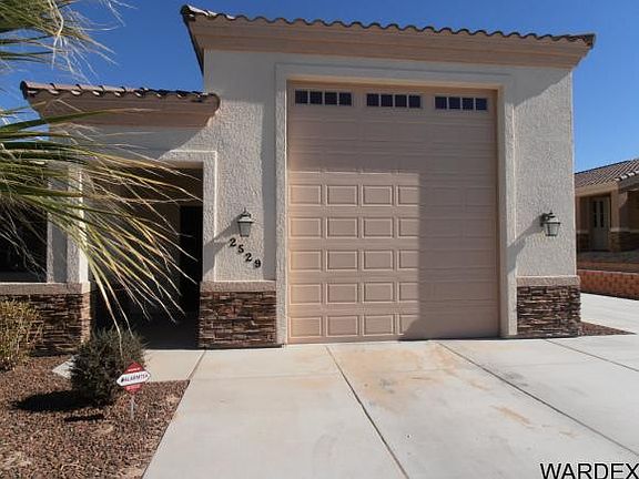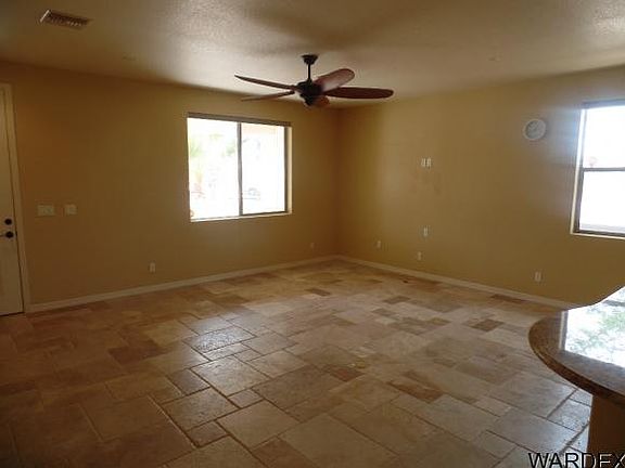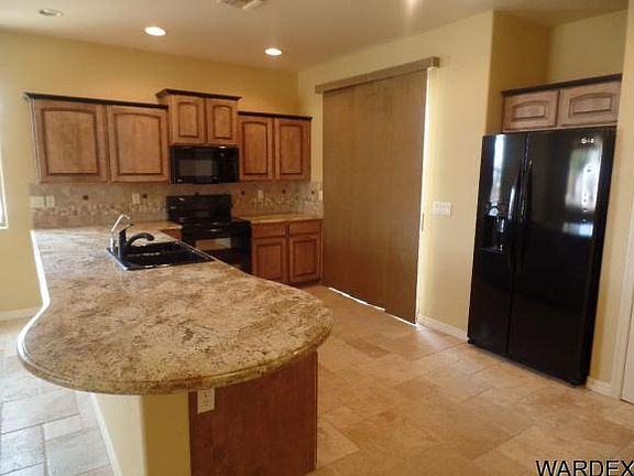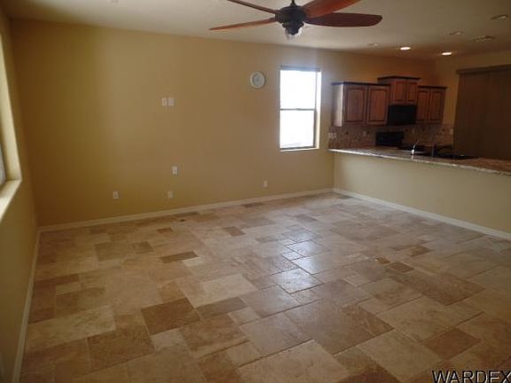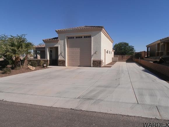New RV community in Fort Mohave. 52' long Motor Home Garage will fit the largest motorhomes with room to walk around the RV. Full hookups and swamp cooled. Home has granite countertops, tiled floors and all electric window coverings. Built in 2011 with tall ceilings, vessel sinks, indoor Laundry Room with side by side washer dyer, gun safe, and covered patio. Outside fully landscaped with watering system. Side of garage has additional concrete slab long enough for boat or another M/H.