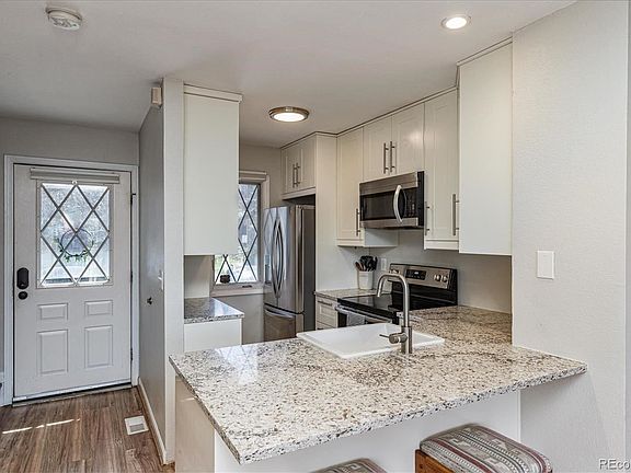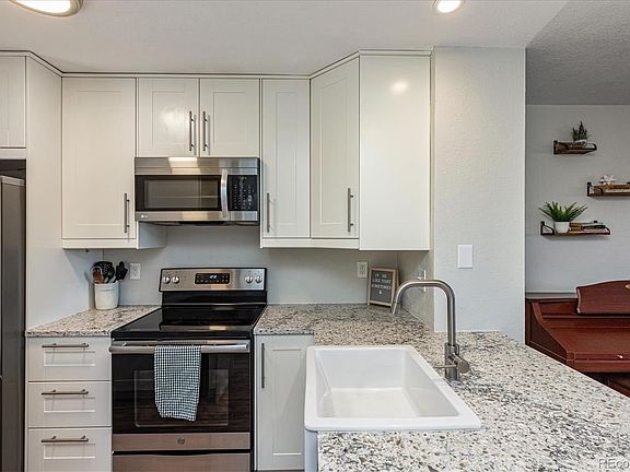 Don't miss this beautiful 2 bedroom, 2 bathroom townhome in an amazing and convenient location near C470 and South University Blvd. Enjoy cooking in your professionally designed and beautifully updated kitchen with slab granite, stainless appliances, farm sink, and breakfast bar which opens to the bright and sunny living room with luxury plank flooring, wood burning fireplace, and a sliding glass doors that take you to your private patio which overlooks the greenbelt and open space. Both the primary bedroom and secondary bedroom are on the upper level. There is a washer/dryer hookup on the upper level and another laundry area conveniently located in the finished basement. The walk out basement features a spacious family room with tile floors, a 3/4 bath, and sliding glass doors that open to the fenced patio/yard area. This home has been meticulously cared for and shows great pride of ownership.