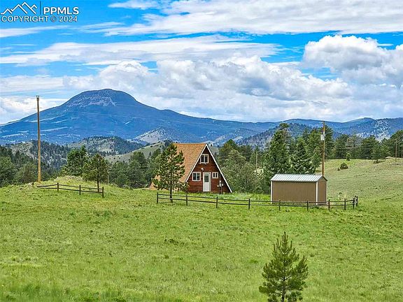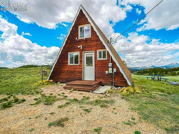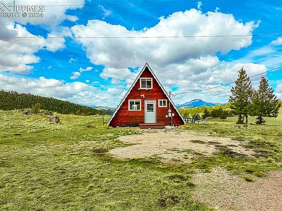Your search for a tranquil remote work location or a silent sanctuary in the Rockies ends here, with furnishings ready to be enjoyed from the moment you arrive! Perched atop 16 acres of verdant land in flourishing Guffey, this delightful 728 sq ft A-frame cabin offers a nostalgic escape from the chaos of everyday life. With just enough space for family outings and treasured moments with loved ones, your chance to embrace the simplicity and beauty of mountain living has manifested! Size won't matter here as much time will be spent outdoors grilling under the sun, admiring vibrant wildflowers, gliding down powder-covered slopes, or exploring the surrounding landscape! The main floor modestly offers a kitchen area, bathroom, and comfy living space leading to a covered deck perfect for morning coffee contemplating your day’s adventures or unwinding at sunset reflecting on prized memories! Upstairs, an additional slumber space and private deck with breathtaking views await you. From the peaceful melody of birdsong to the exhilarating sight of hawks and eagles soaring overhead, the mesmerizing natural beauty that surrounds this peaceful refuge will settle your soul. Situated within the desirable Cover Mountain Ranch subdivision, you’ll enjoy the benefits of low HOA fees and sensible covenants safeguarding your investment. Enjoy year-round accessibility through well-kept gravel roads off paved CR 102, leading to the eclectic town of Guffey where you’ll find eateries, an antique store, a K-8 Charter School, Post Office, Library, and Community Center. Plus, easy access to the thriving locales of Canon City, Salida, Breckenridge, Cripple Creek, Florissant, Woodland Park, and Colorado Springs makes this property a savvy asset in mountain real estate. Seize the opportunity to secure your own piece of mountain utopia - the perfect remedy for a hectic life!